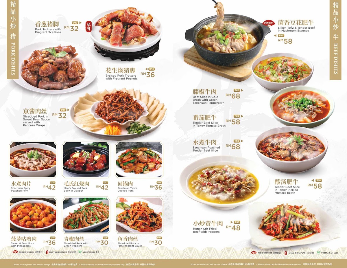 Hua Yu Ren Jia Restaurant Menu